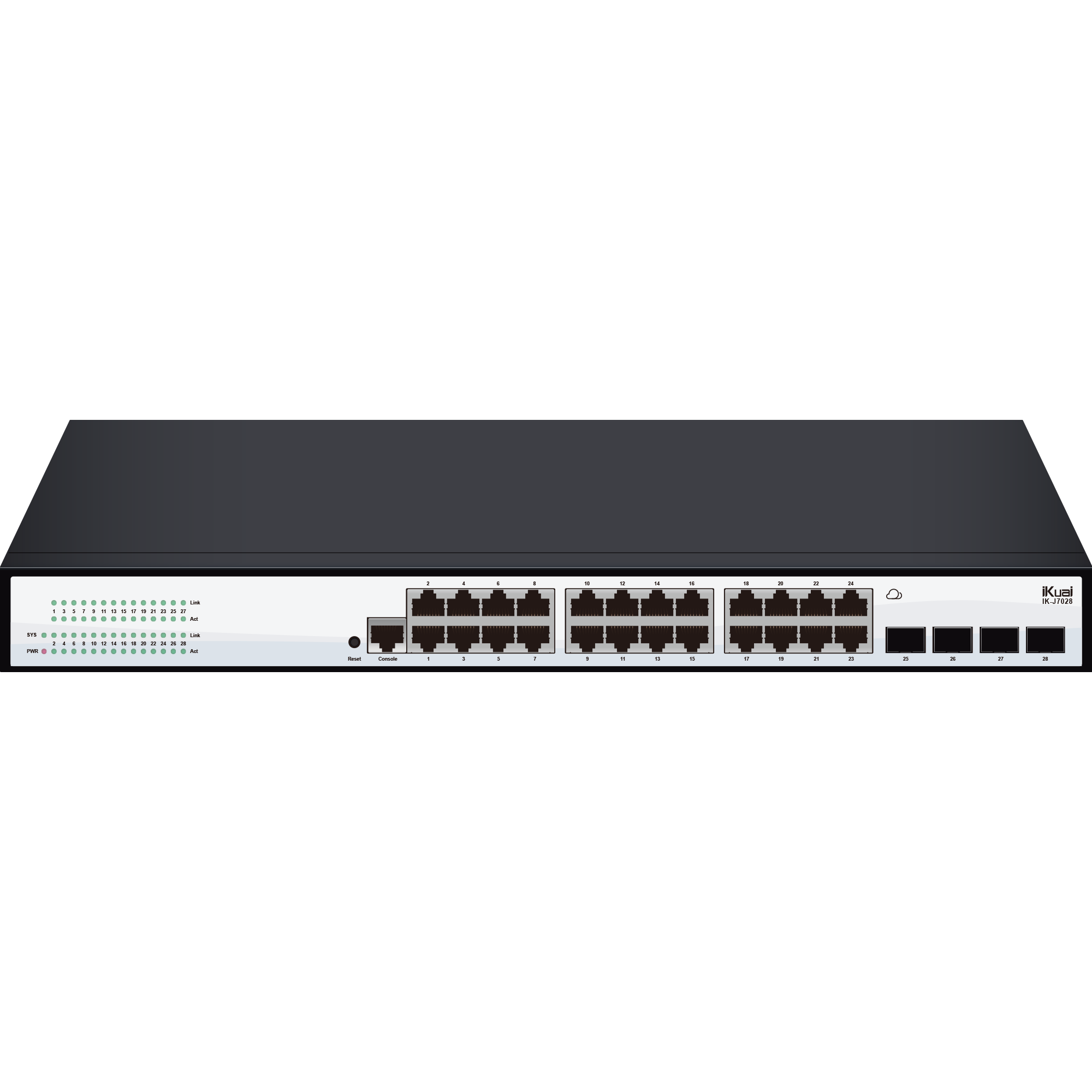 可網管28口千兆交換機24個千兆電口下行4個千兆SFP光口上行零配置上線4kv端口防雷19寸鐵殼外觀支持機架安裝支持CLI/WEB管理支持云管理