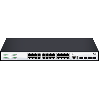 可網(wǎng)管28口千兆交換機(jī)24個(gè)千兆電口下行4個(gè)萬兆SFP+端口上行零配置上線4kv端口防雷19寸鐵殼外觀支持機(jī)架安裝支持CLI/WEB管理支持云管理
